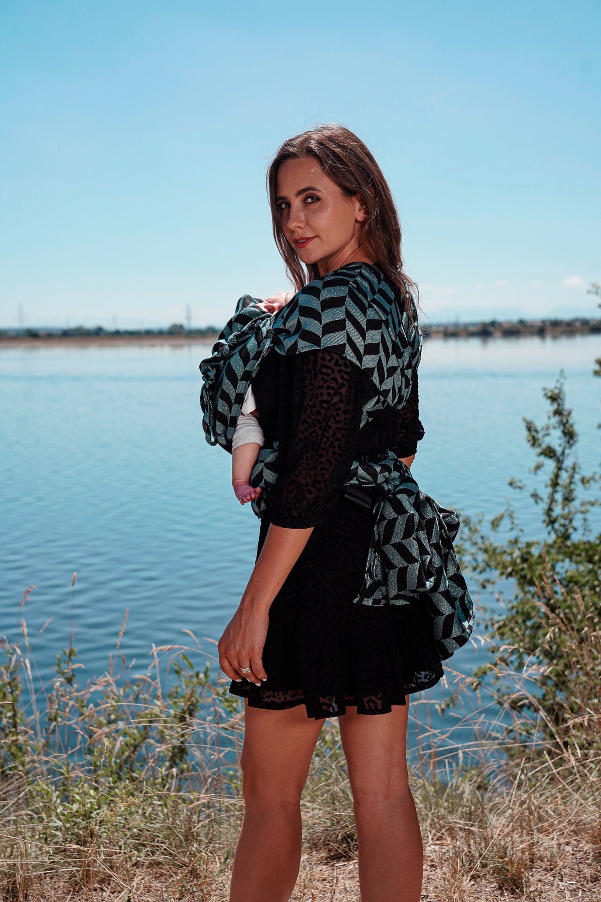 Glamorous design that attracts everyone's attention. Our exclusive Baby Carrier New Love in black and dark blue with sparkling glitter is a true masterpiece. The interplay of the elegant colors black and dark blue gives the Baby Carrier a noble and timeless appearance. But the highlight is undoubtedly the sparkling glitter effect!