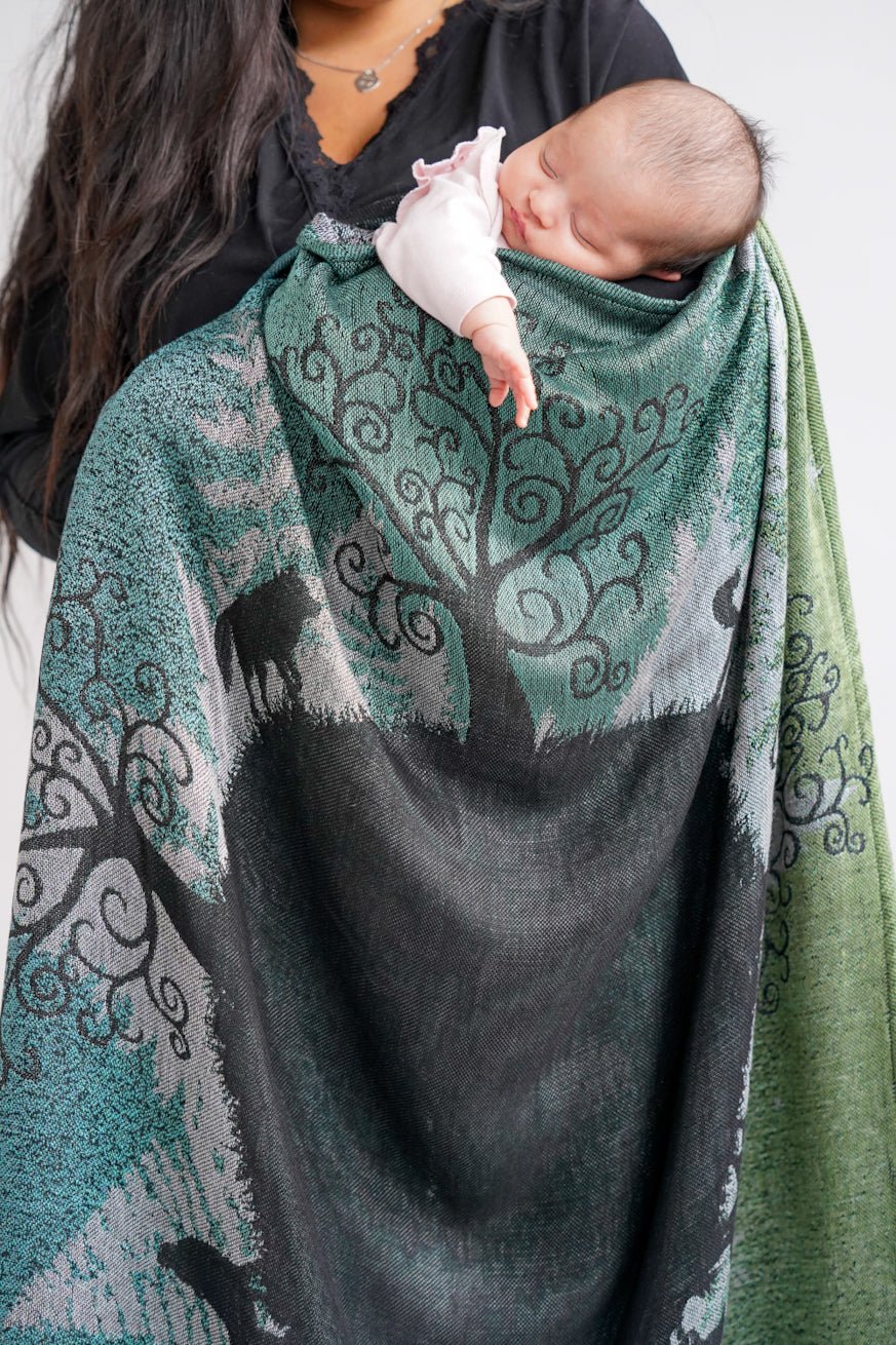 A new pack of wolves has arrived in KOKADI land. In beautiful pine green forest of wolves Finn comes as a silky soft cuddly blanket for you and your baby! Especially mystical and enchanting is the strong color gradient through the ombre weaving technique. This cuddly blanket inspires young and old!