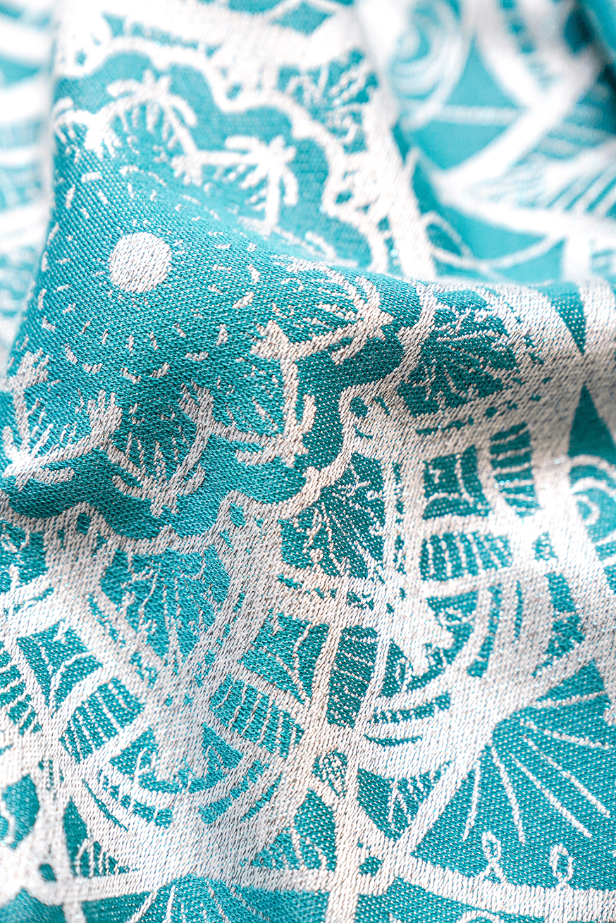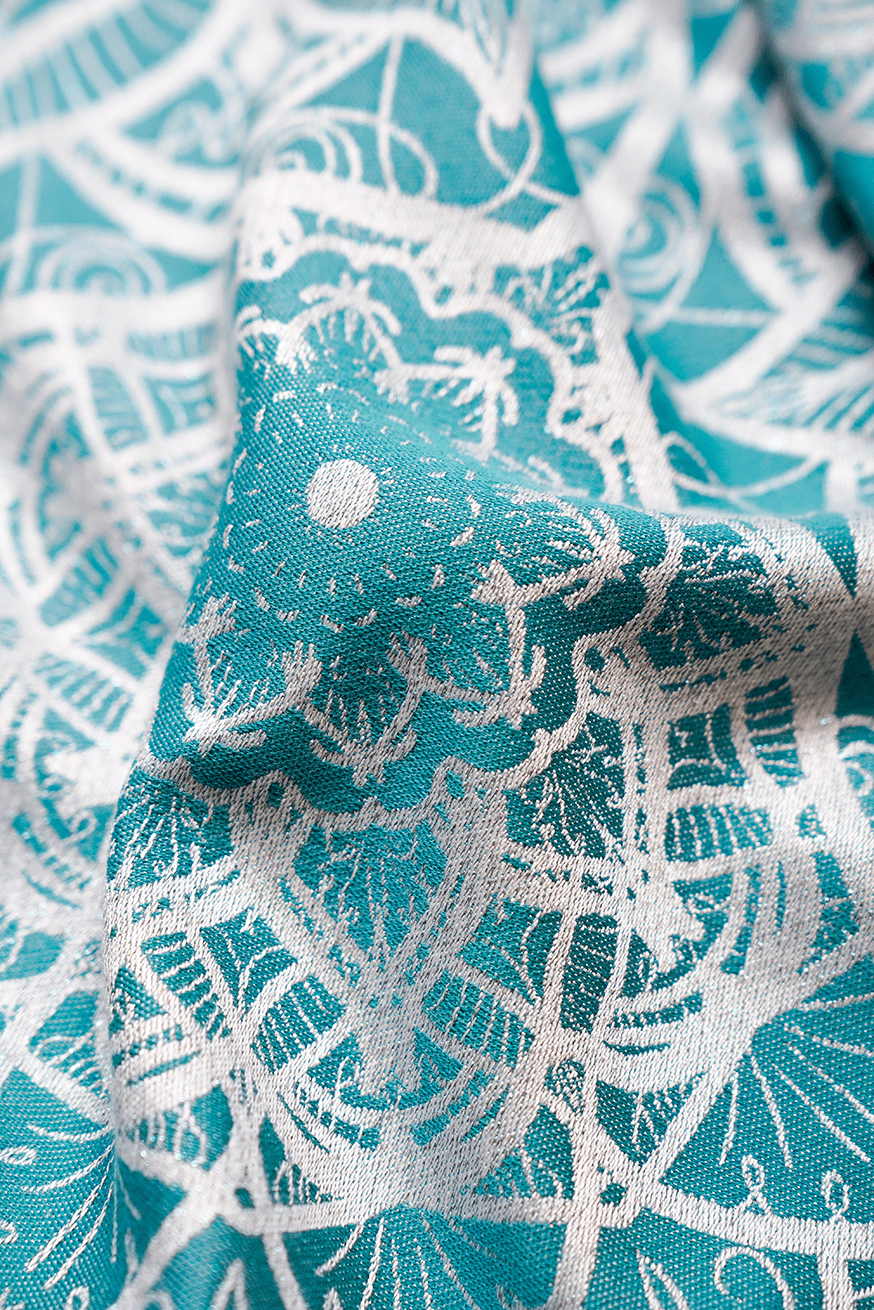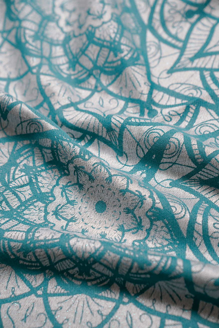 Lilenia Jonathan bringt Leichtigkeit in deinen Alltag. Türkis trifft auf feine Mandalas, der Stoff glänzt zart und fühlt sich auf der Haut kühl und weich an – wie frisch gewaschene Sommerluft.