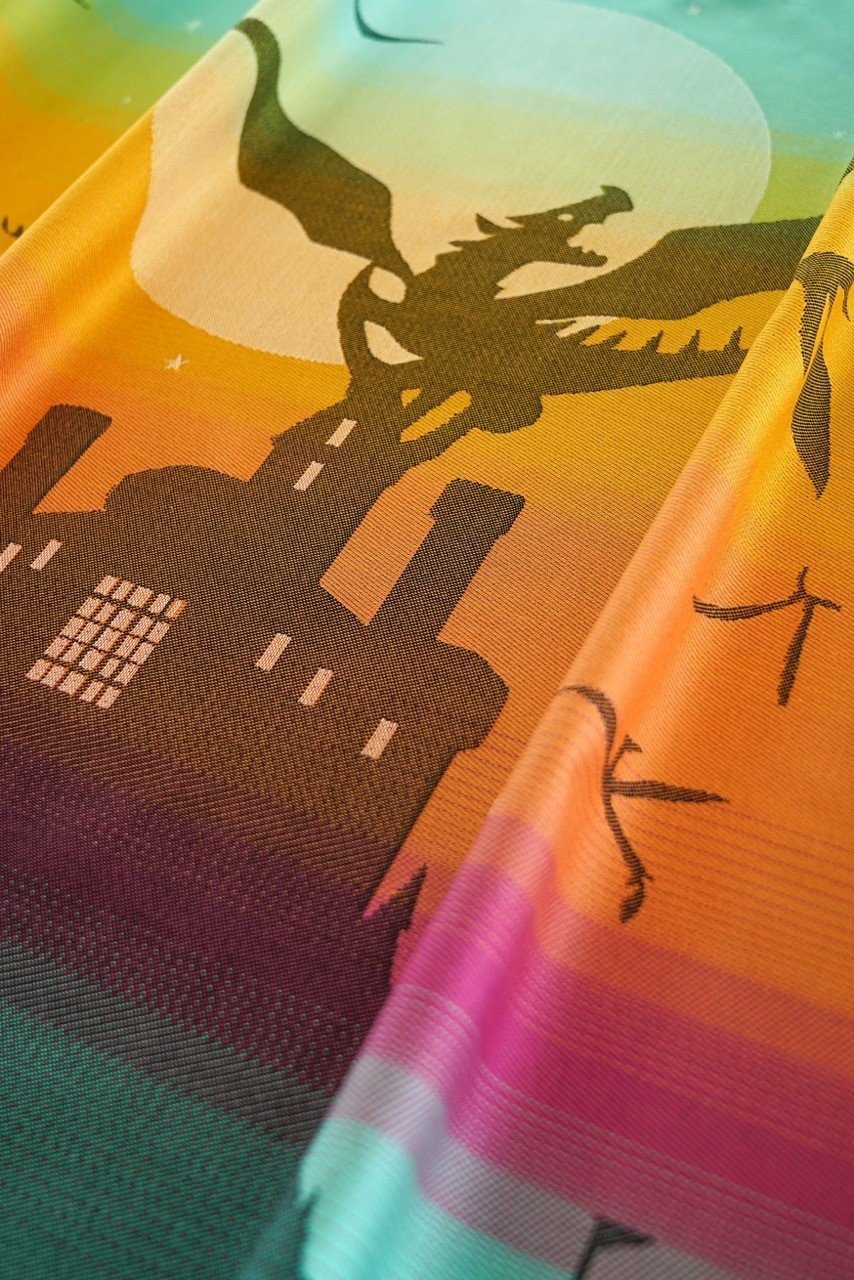Enjoy wonderful babywearing moments in best KOKADI comfort with our unique and beautiful Emilias Dragoncastle baby wrap!