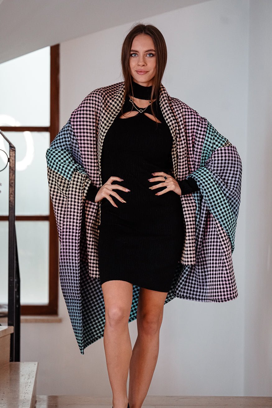 With soft pastel rainbow colors that sink into the depths and a high-contrast black that gently rises above, a three-dimensional structure is created that seems close enough to touch. The weave creates a unique tactile experience - when touched, you can feel the raised honeycombs gently emerging under your fingertips, while the recessed areas convey a feeling of soft, fluffy security.