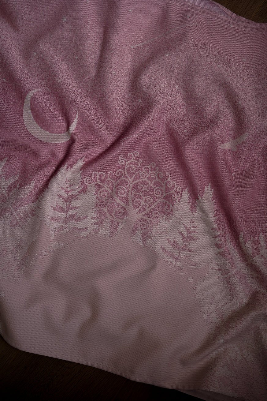 Das Tragetuch „Wald der Wölfe Elaine 2.0“ entführt dich in eine mystische Szenerie, in der sich dunkle Wölfe durch einen verwobenen Wald bewegen. Anders als die helle Variante der Zuckerwattenwölfe zeigen sich die Wölfe hier in ihrer geheimnisvollen, nächtlichen Gestalt – kraftvoll, wachsam und schützend.